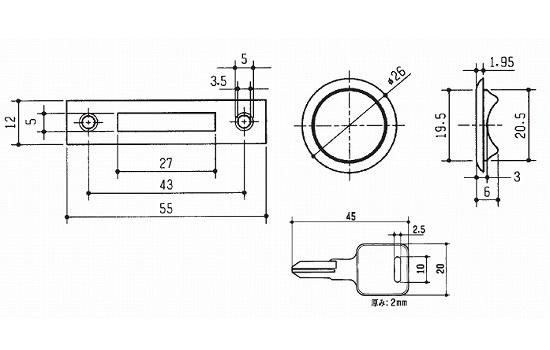引き出し用の面付シリンダー錠です。