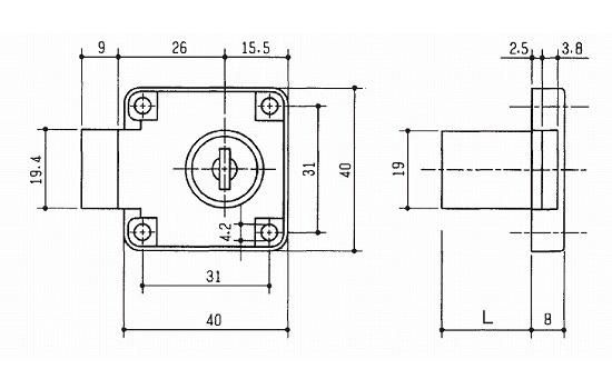 開き扉用の面付シリンダー錠です。