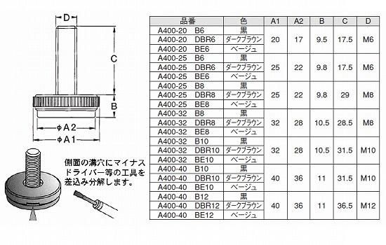 750100163 フェルト付きアジャスター A400−25 M8 黒