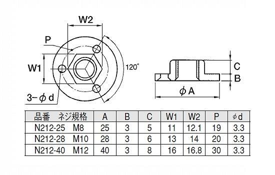 750170021 亜鉛ダイカスト製 アジャスターベース N212−28 受座 M10